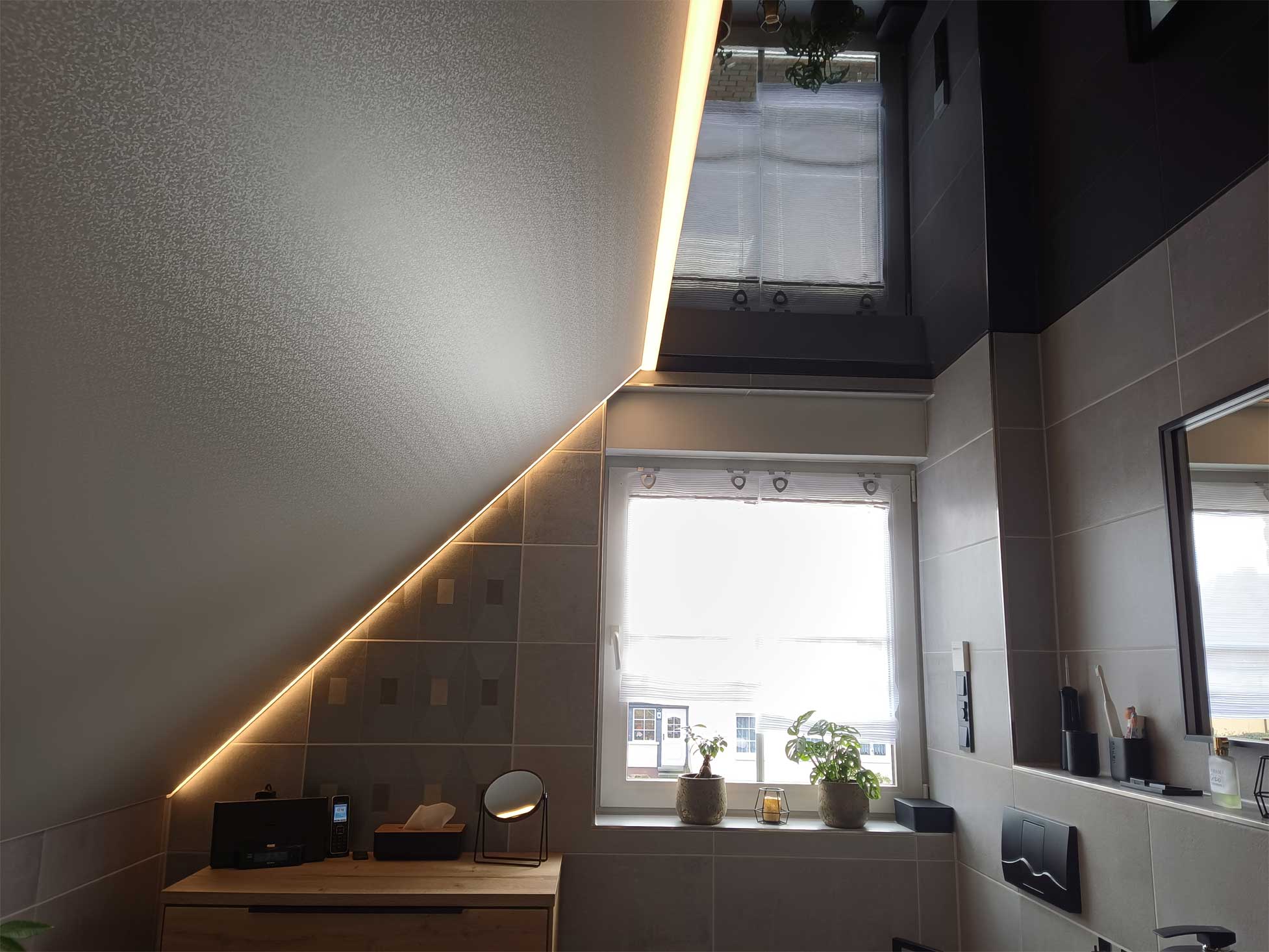 Ja, die neue Spanndecke wird einfach unter der alten Decke montiert – ohne Schmutz oder Abrissarbeiten.