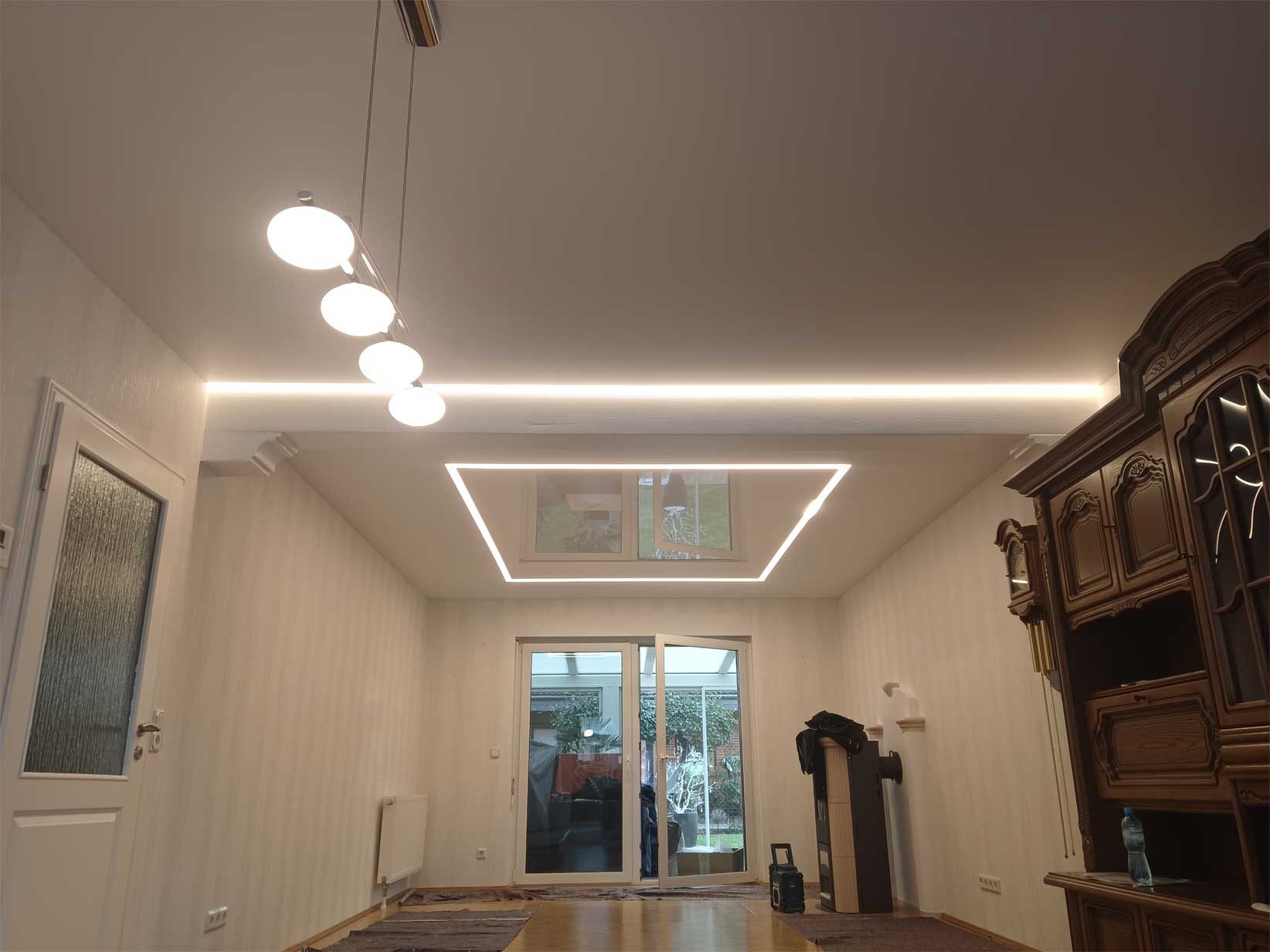 Unsere modernen Spanndecken überzeugen durch innovative Maßanfertigungen und ermöglichen die Integration zeitgemäßer Lichtkonzepte für stimmungsvolle und funktionale Räume. Ob zur Verkleidung von Decke oder Wand: Die Montage erfolgt sauber, in nur einem Tag, ganz ohne Demontage und Baustellenchaos – mit lebenslanger Garantie und über 30 Jahren Erfahrung. Ob Wohnhaus, Praxis, Büro oder Ladenlokal: Unsere flexiblen Spanndeckensysteme bieten Ihnen gestalterische Freiheit und höchste Qualität.